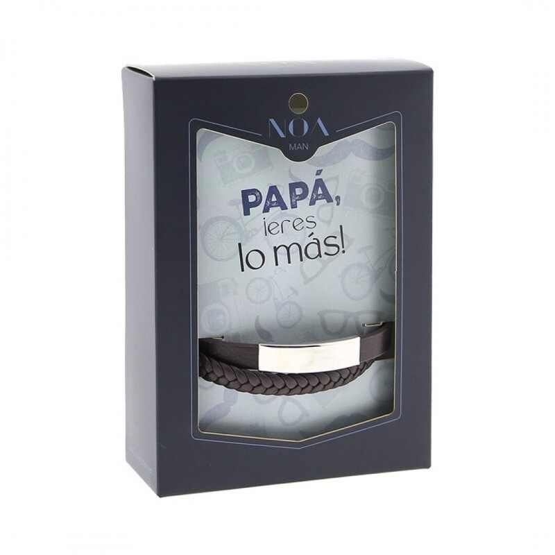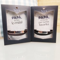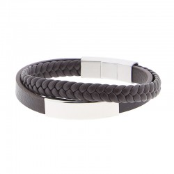 Pulsera de piel con placa metálica de doble vuelta.